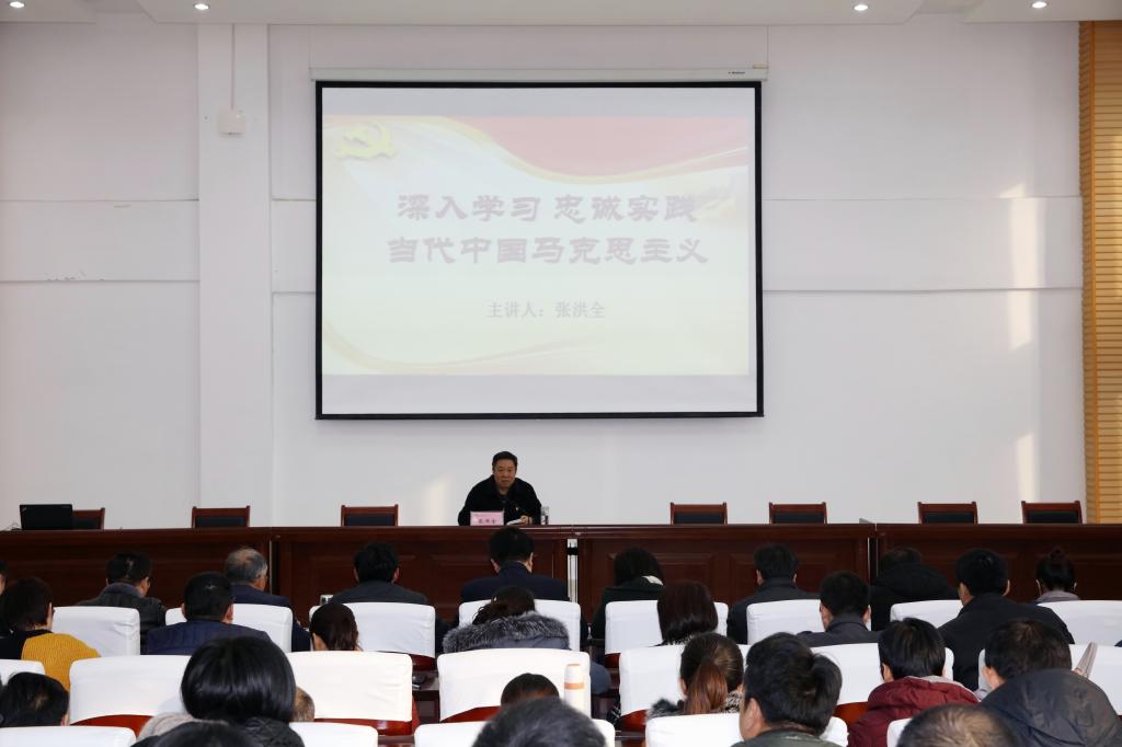 12月6日,天行体育官方网站党委书记张洪全在天行体育官方网站党校讲《深入学习忠诚实践当代中国马克思主义》专题党课。办公室、宣传统战处、汽车工程天行体育官方网站、思想政治理论教学部党支部全体党员参加听课。