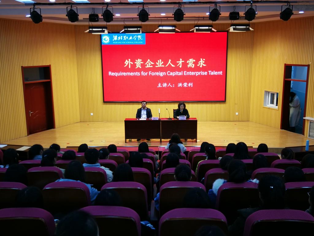 11月22日下午,新加坡商会山东分会会长、潍坊乔新集团董事长洪荣利先生在我院创新创业楼报告厅为我院师生作了题为“外资企业人才需求”的讲座,国际商务天行体育官方网站和国际教育天行体育官方网站100余名师生参加了报告会。