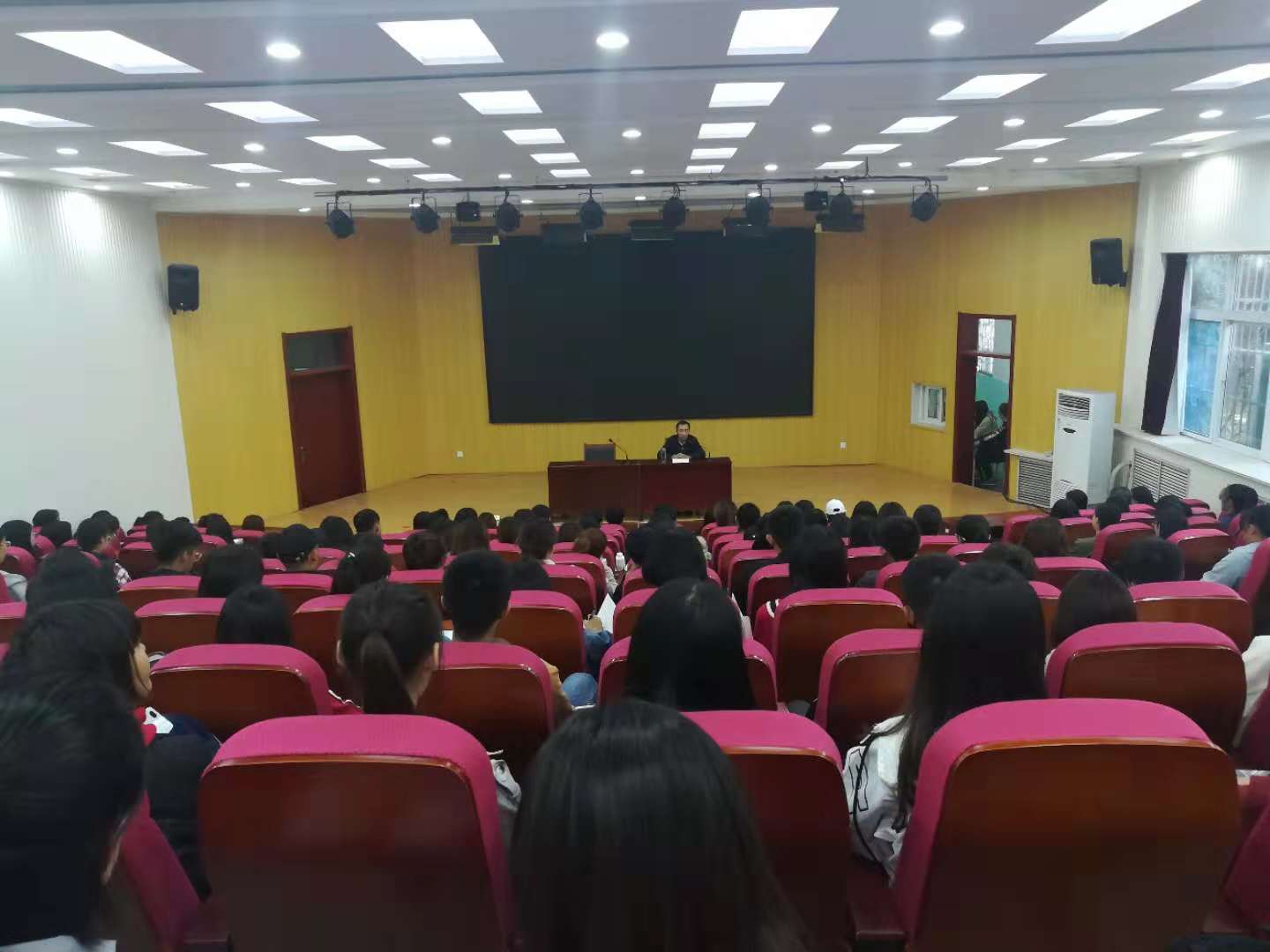 10月11日,本学期首场人文素养讲座在奎文校区创业中心报告厅开讲,文化创意天行体育官方网站党支部书记张玉鹏作了题为“德润心田,健康成长----大学生人文素养与全面成才”的讲座,奎文校区200名学生参会听讲。