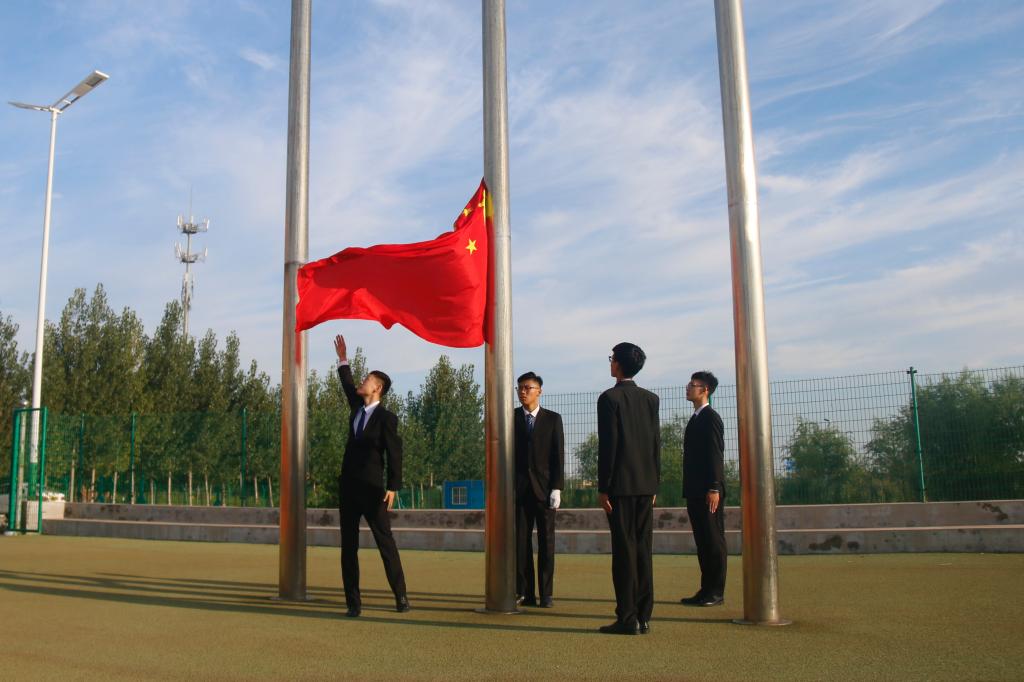 上午7点整,升旗仪式正式开始。天行体育官方网站国旗护卫队成员迈着铿锵的步伐来到了国旗台下。在激昂的国歌声中,鲜艳的五星红旗徐徐升起。全体唱国歌、行注目礼,庄严肃穆。