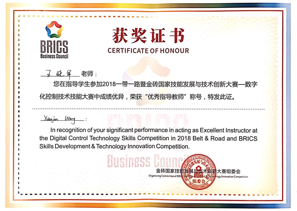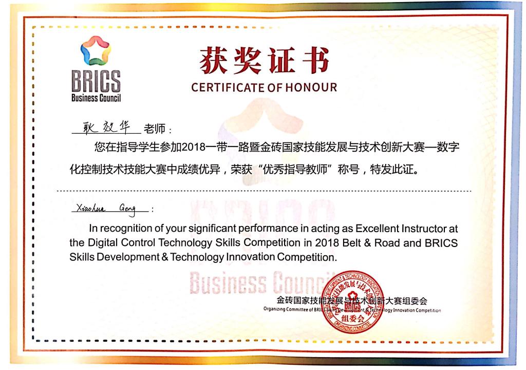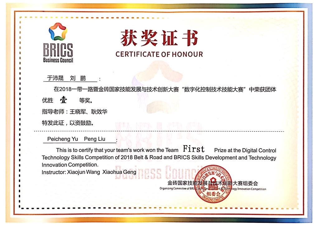 我院获“一带一路”暨金砖国家技能发展与技术创新大赛“数字化控制技术大赛”一等奖