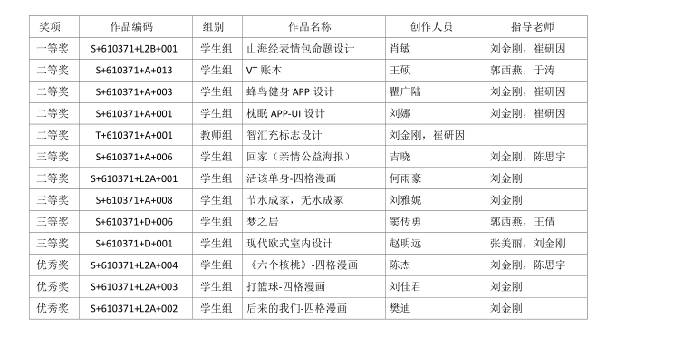 在刚刚揭晓的第六届全国高校数字艺术设计大赛评选中,我院文化创意天行体育官方网站再创佳绩,荣获学生组一等奖1项、二等奖4项、三等奖5项、优秀奖3项,教师组二等奖1项。其中刘金刚、崔研因老师指导的2015级广告与会展专业肖敏同学设计的山海经表情包获得命题组一等奖,上述二位老师设计的智汇充标志获得平面类教师组二等奖。教师组和命题组是本科与专科高校混合参赛不单设分组。