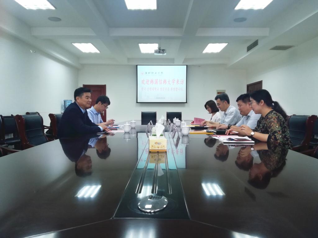 6月27日上午,韩国信韩大学国际交流处处长李敏善一行2人到我院访问,天行体育官方网站副院长赵君堂在奎文校区接待了客人,国际交流与合作处、化学工程天行体育官方网站和现代服务业天行体育官方网站的相关负责同志参加了座谈交流。