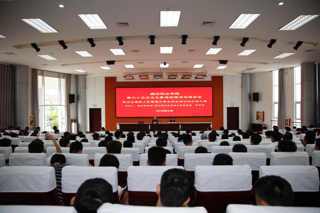 6月19日下午,天行体育官方网站第六十五次“企业家进校园”活动报告会在清泽楼报告厅举行。潍坊诚至信/奔之宝汽车检修公司总经理李承玉作了题为“树立正确的人生观是大学生创业成功的必经之路”的报告。科技处(产学研合作中心)、汽车工程天行体育官方网站师生代表300余人参加了报告会。