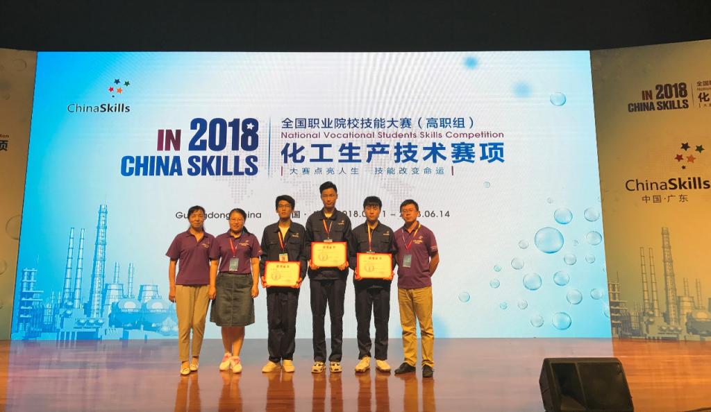 6月11日至14日,2018年全国职业院校技能大赛高职组“化工生产技术”赛项在广东佛山举行,由我院李晓波、王钦、郑万杰3名学生组成的代表队获得二等奖。
