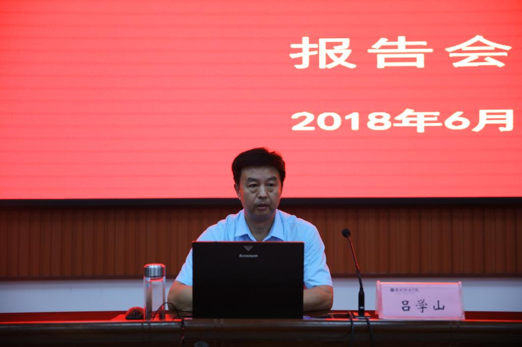 吕学山以《学习新思想,担当新使命》为题,分析解读了习近平总书记在北京大学师生座谈会和纪念马克思诞辰200周年大会上的重要讲话精神实质和丰富内涵,并结合高校工作实际就坚持社会主义办学方向、培育和弘扬社会主义核心价值观、建设一支高素质的教师队伍、努力形成高水平的人才培养体系等方面内容进行了精准阐述。王秀慧结合学习习近平总书记在北大座谈会和马克思诞辰200周年大会上的重要讲话精神,作了《时代责任与历史使命》讲座,号召青年学生坚定理想信念、认清时代责任、勇担历史使命、不忘初心、砥砺前行。