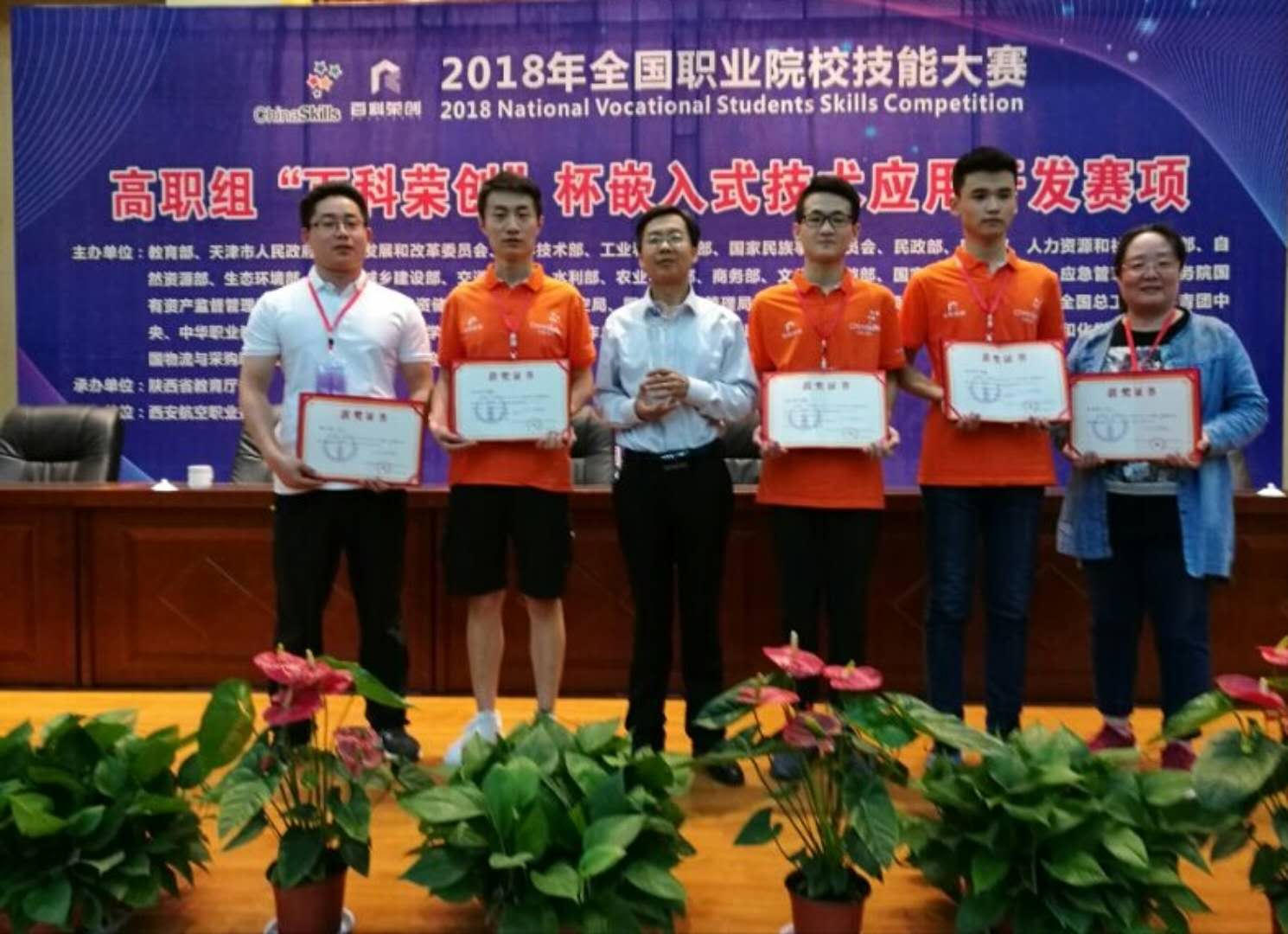 5月27日,2018年全国职业院校技能大赛高职组“嵌入式技术应用开发”赛项在西安航空职业技术天行体育官方网站举行,共有来自全国各省市的95支代表队参赛。我院机电工程天行体育官方网站学生王树青、张晓林等组成的山东代表队在比赛中沉着应战,通力合作,最终获得该赛项一等奖第一名的好成绩。