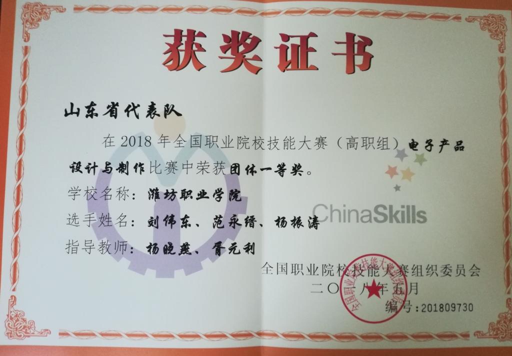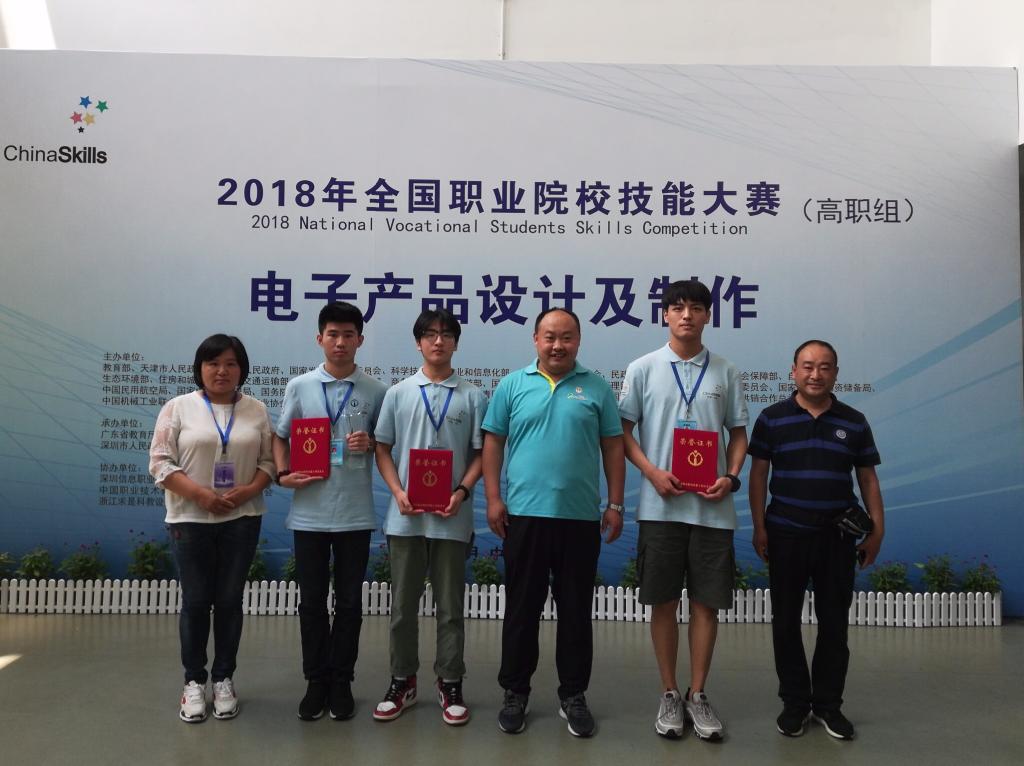 5月23日,2018年全国职业院校技能大赛高职组“电子产品设计与制作”赛项在深圳信息职业技术天行体育官方网站举行,共有来自全国各省市的69支代表队参赛。我院机电工程天行体育官方网站学生刘伟东、范永缙、杨振涛组成的山东代表队在比赛中不畏强手,沉着应战,顽强拼搏,通力合作,最终获得该赛项一等奖的好成绩。