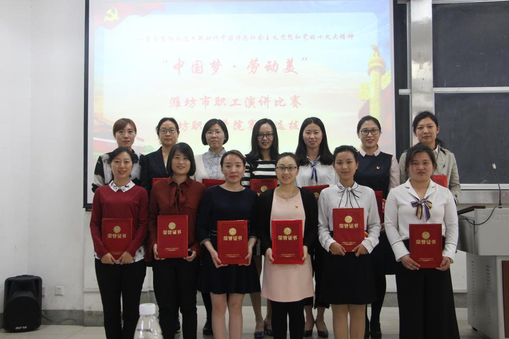 5月10日下午,天行体育官方网站在奎文校区举行“中国梦·劳动美——学习贯彻习近平新时代中国特色社会主义思想和党的十九大精神”全市职工演讲比赛天行体育官方网站赛区选拔赛。