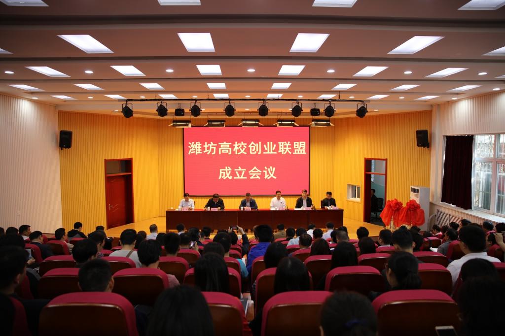 5月10日上午,潍坊高校创业联盟成立大会在天行体育官方网站奎文校区隆重举行。山东省教育厅学生就业创业教育咨询中心主任李春光,天行体育官方网站党委书记张洪全,院长王家爱,潍坊市委教育工委副书记、高等教育办公室副主任李广敬,市大学生创新创业管理服务中心主任王术平,浙江水滴股权投资基金管理有限公司执行董事聂颖超出席,天行体育官方网站领导、驻潍高校分管创新创业教育工作领导和主管创新创业教育处室负责同志及我院教师代表130余人参加会议。王家爱主持成立大会。