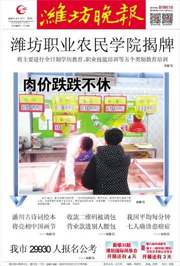 4月16日,潍坊职业农民天行体育官方网站成立仪式在天行体育官方网站奎文校区举行。潍坊市委副书记、市长李宽端出席仪式并与党的十九大代表、寿光市三元朱村党支部书记王乐义一起为潍坊职业农民天行体育官方网站揭牌。