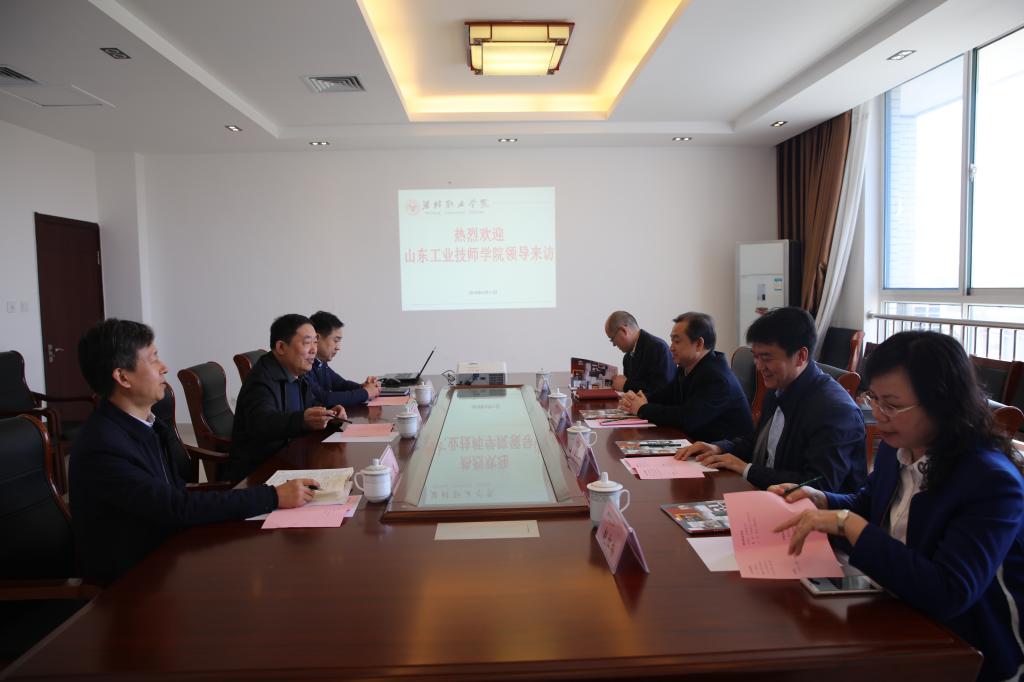 4月11日,山东工业技师天行体育官方网站党委副书记孙义宝一行5人来我院考察交流。党委副书记宋桂言会见了客人。党委委员、办公室主任谭明,组织人事处负责同志参加座谈。
