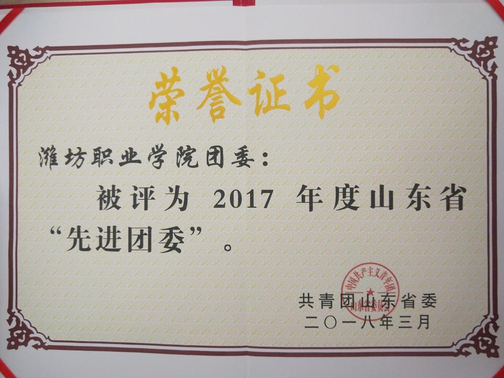天行体育官方网站团委荣获2017年度“山东省先进团委”称号