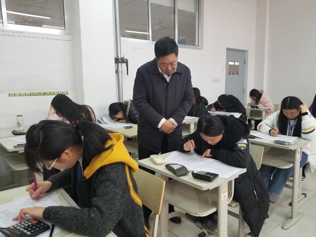 在教学楼,张洪全对正在进行的期末考试进行了巡视,对相关考场的考试课程、考生人数、监考教师履职、考生纪律、试卷命题等进行了检查,并认真了解了考风考纪宣传教育、考场秩序等情况。张洪全强调要进一步提升教学管理的信息化水平,把严肃考风考纪作为立德树人的重要环节抓实抓细,把培育学生诚实守信、公平竞争作为养成教育的重要内容,切实形成以考风促学风、以学风促教风的良好氛围。张洪全对各二级天行体育官方网站的走廊文化建设给予了充分肯定,希望要结合专业实际,继续丰富内容、办出特色,发挥好环境育人作用。