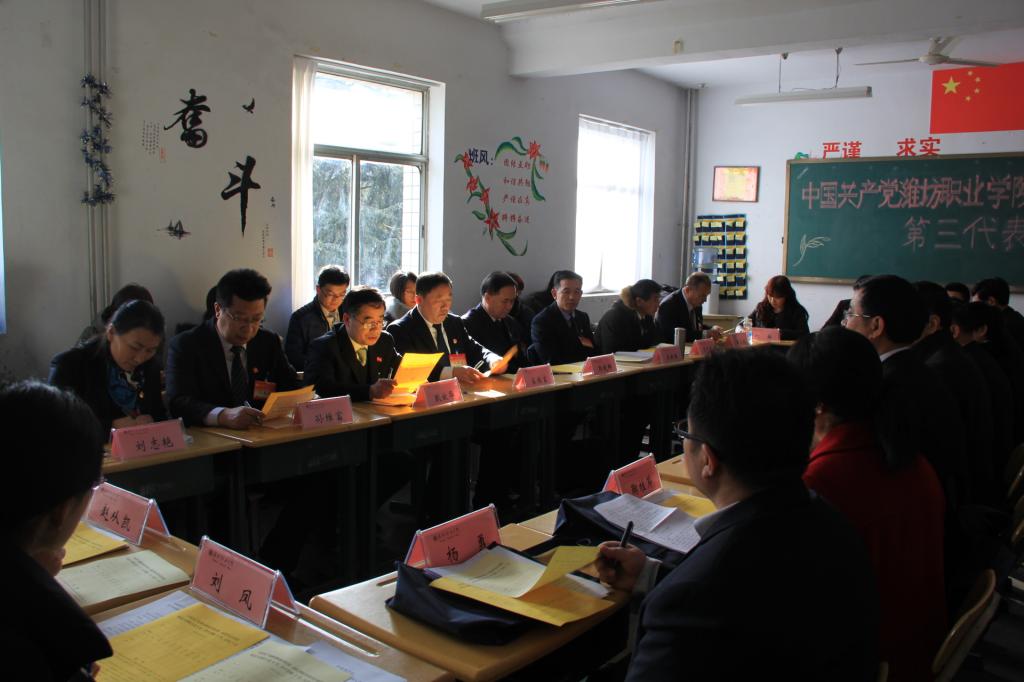 1月11日,奎文校区创业中心报告厅气氛热烈,悬挂在主席台帷幕中央的党徽熠熠闪光,紧紧簇拥在党徽两侧的十面红旗格外鲜艳,备受广大师生瞩目的中国共产党天行体育官方网站第一次代表大会隆重开幕。张洪全同志代表中共天行体育官方网站委员会作工作报告。王家爱同志主持会议。大会主席团全体成员在主席台就座。149名党员代表参加大会。部分天行体育官方网站老领导、党外副处级干部、现代服务业天行体育官方网站负责人代表列席会议。