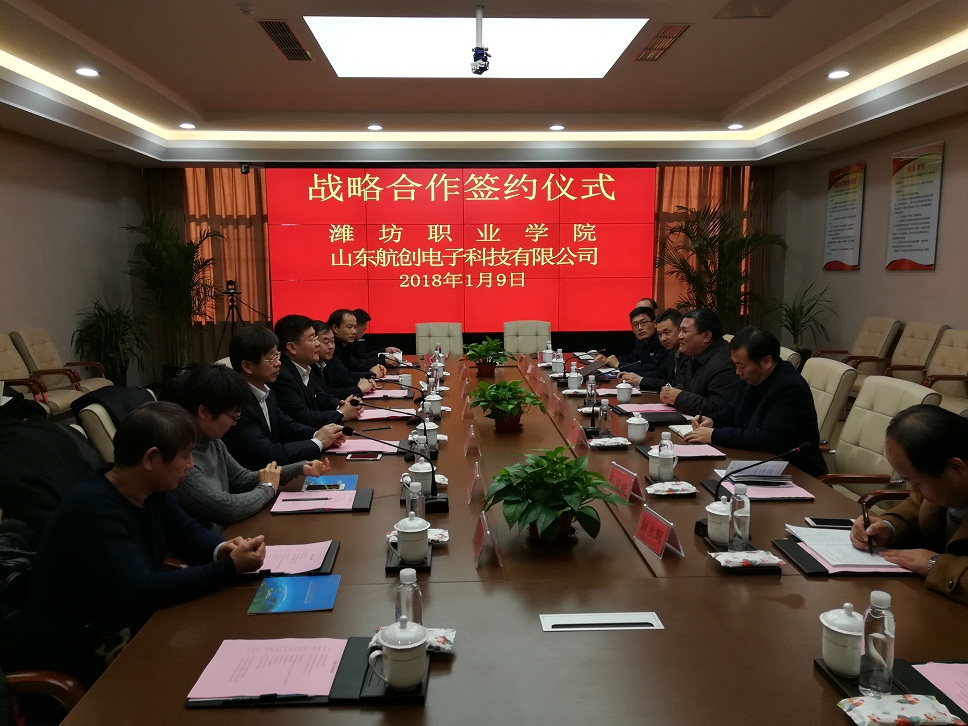 1月9日,我院与山东航创电子科技有限公司战略合作协议签署仪式在山东测绘地理信息产业基地举行。院长王家爱,副院长贺志强,坊子区副区长高凤金,山东航创电子科技有限公司董事长梁旭,山东测绘地理信息产业基地管理中心党委书记杨洪岩,坊子区发改局、教育局、科技局、国土资源分局等部门负责同志,天行体育官方网站产学研合作中心、机电工程天行体育官方网站负责同志出席签约仪式。
