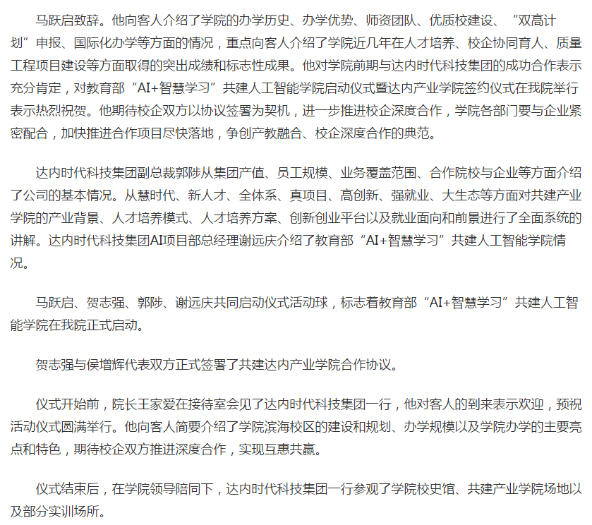 [齐鲁网]教育部“AI+智慧学习”共建人工智能天行体育官方网站启动仪式暨达内产业天行体育官方网站签约仪式在天行体育官方网站举行