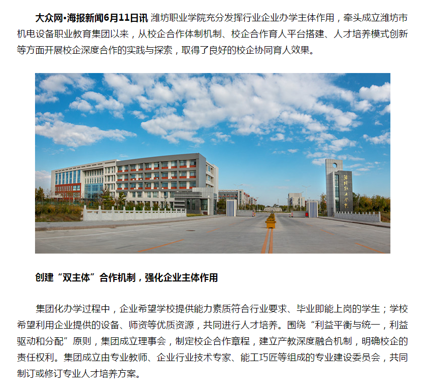 [大众网]天行体育官方网站集团化办学 开展校企合作的深度实践