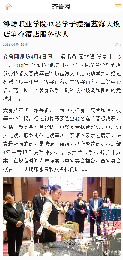 [齐鲁网]天行体育官方网站42名学子摆擂蓝海大饭店争夺酒店服务达人