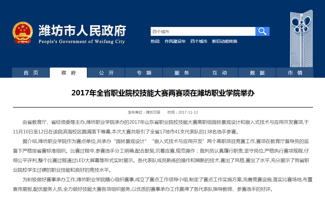 潍坊市人民政府网站: 2017年全省职业院校技能大赛两赛项在天行体育官方网站举办