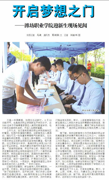 上午九点,当记者来到天行体育官方网站滨海校区时看到,校园内彩旗随风飘扬,迎新接待点人潮涌动,随处可见一张张富有青春朝气的新面孔,处处洋溢着热闹的氛围。记者在人群中看到,一位手提行李的学生正在新生报到处咨询相关事宜,格外显眼。这位同学名叫辛宇,是天行体育官方网站2017级会计专业的新生,来自内蒙古赤峰市林东县巴林左旗。“滨海频临渤海,早在开学之前,我就从网上浏览看到天行体育官方网站滨海校区位于一个美丽的海洋城市,来到这里后也发现,滨海的环境非常好,新校园也很美丽,办学质量很好,接下来打算加入大学社团,结交一些新朋友,扩展自己的见识,与同学们一同成长,一同进步,希望将来留在山东半岛实现自己的人生梦想。”辛宇介绍说。