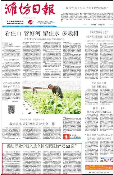 [潍坊日报]天行体育官方网站入选全国高职院校“双50强”