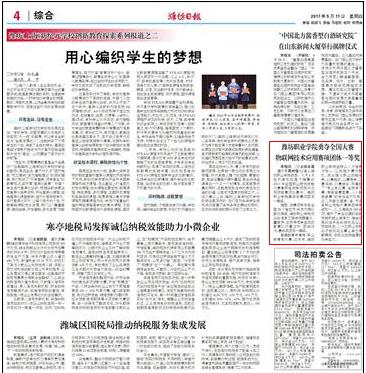 [潍坊日报]天行体育官方网站夺得国赛物联网技术应用赛项团体一等奖