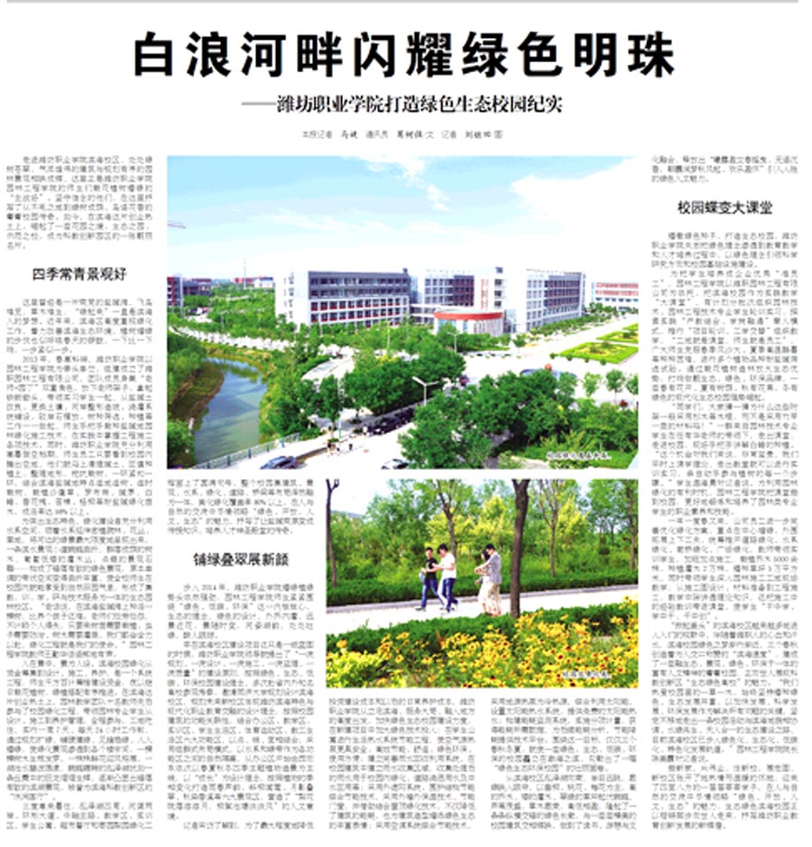 “掀起盖头”的滨海校区越来越多地进入人们的视野中,伴随着潍职人的心血和汗水,滨海校园绿色之梦渐行渐近,三个春秋创造着为人交口称赞的“滨海速度”,建成了一座融生态、景观、绿色、环保于一体的富有人文精神的菁菁校园,正向世人展现科教创新区“生态绿色高校”的魅力。“我们热爱校园里的一草一木,始终坚持播种绿色、生态发展并重,以加快发展、科学发展、环保发展作为解决所有问题的关键,坚定不移地走出一条校园活动与滨海地貌相协调、水绿共生、天人合一的生态建设之路,目前滨海校区已步入绿色化、生态化、低碳化、特色化发展轨道。”园林工程天行体育官方网站院长陈美霞对记者说。