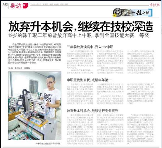 [齐鲁晚报]放弃升本机会,继续在技校深造
