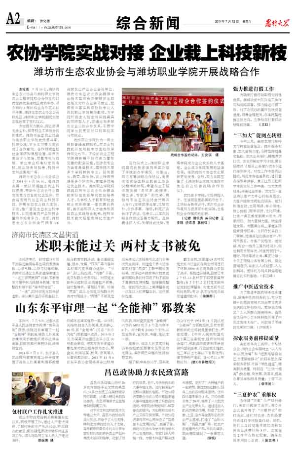 媒体潍职:[潍坊大众]农协天行体育官方网站实战对接 企业栽上科技新枝
