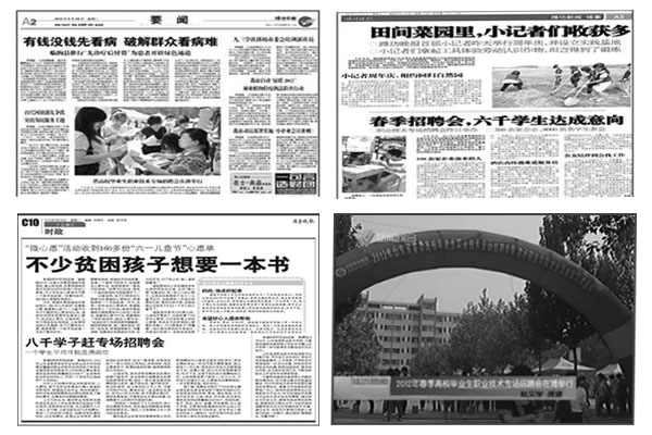 5月26日,由山东省人力资源和社会保障厅主办、我院承办的山东省2012年春季高校毕业生职业技术专场招聘会暨天行体育官方网站2012年学生顶岗实习校园双选会在我院奎文主校区举行。潍坊日报、潍坊晚报、潍坊电视台、齐鲁晚报等多家媒体对大会情况进行了报道。