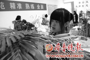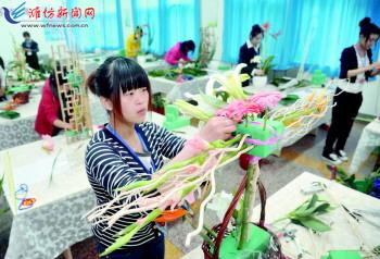 25日,为期两天的2012山东省职业天行体育官方网站农业技能大赛在天行体育官方网站进行了操作技能的比赛,来自全省11个地市、14所高职院校的89名学生参加了种子质量检测、艺术插花等6个项目的比赛。图为选手在参加艺术插花项目的比赛。