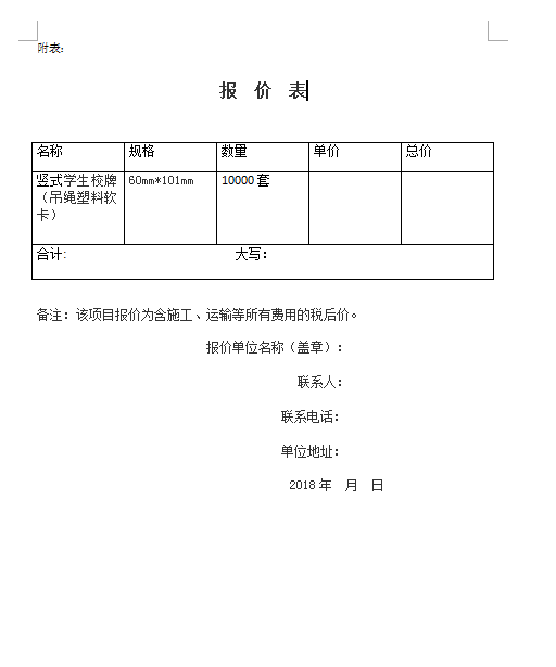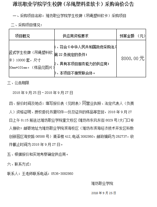 天行体育官方网站学生校牌(吊绳塑料柔软卡)采购二次询价公告