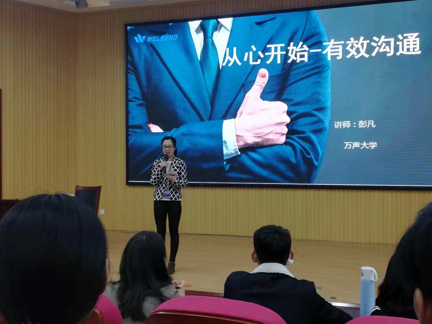 活动将聘请14名企业专家、创业精英,以“导师进课堂”的形式,现身说法,他们将结合自身经历和就业、创业工作实际,与同学们面对面交流,全方位解答大家关心的问题和当前的热门话题。活动共分职场体验、创业讲堂、素质拓展、成果展示四个模块,首堂课,现代服务业天行体育官方网站邀请了万声大学运营中心主管彭丹老师,彭老师多年来一直从事员工培训管理工作,她以“从心开始有效沟通”为主题,将活动分为有效沟通知识概述、沟通能力提升以及归纳总结三个部分向同学授课,通过亲切的互动、巧妙的问答,将抽象的知识生动化,使同学们理解的更加透彻。活动中以马云、王健林等实例为模板,带领同学们模拟职场交流,赢得了同学们的阵阵掌声。最后,彭老师将自己总结出来的七个沟通突破口悉心的讲给大家,还为同学们带来了来自万声大学的相关教材。
