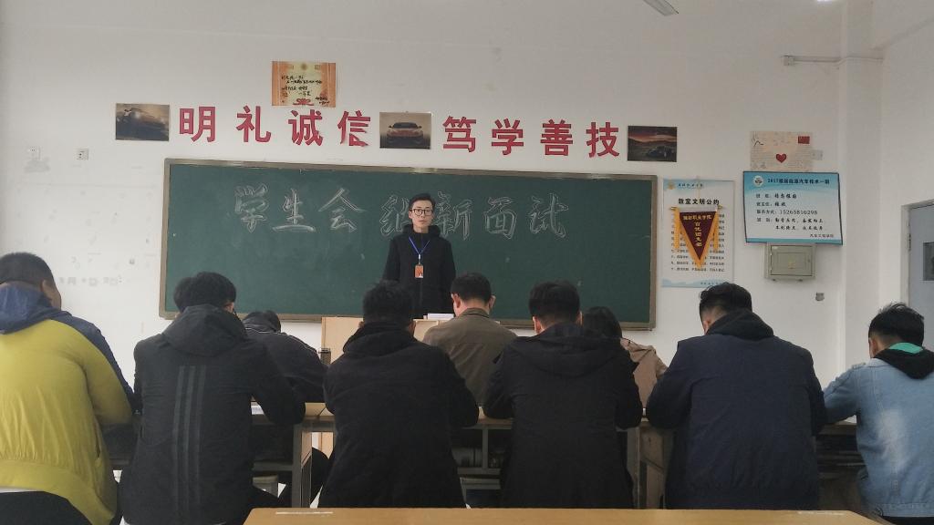 为促进汽车工程天行体育官方网站学生工作更加规范,强化学生的自我教育、自我管理、自我服务、自我监督,培养和壮大学生干部队伍,保证学生会工作的连续性,充分发挥学生会学生干部服务天行体育官方网站、服务同学的主体作用,汽车工程天行体育官方网站于本周启动了新一届学生会干部选拔工作,各班级100余名同学报名参加了此次选拔。