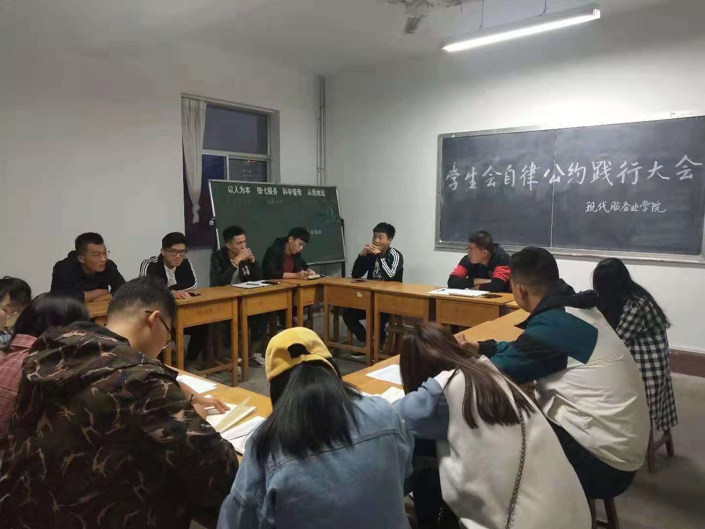 为建设一支有理想、有担当、有品德的学生工作组织,10月6日,现代服务业天行体育官方网站召开学生干部此自律公约践行大会,呼吁学生会成员勿忘本心,争做有理想、有担当、有品德的学生干部。