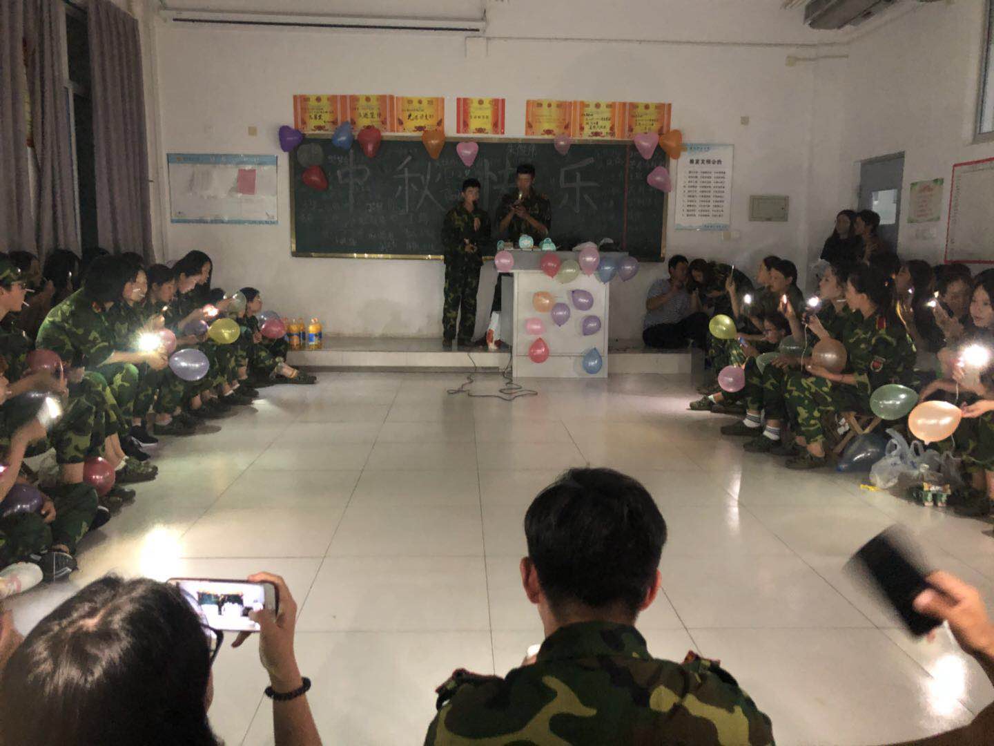 9月24日,新生军训的第八日,也是中秋佳节,为了缓解2018级新生的思乡之情,让大家更快地融入食品药品天行体育官方网站这个大家庭,天行体育官方网站领导及辅导员、各班班主任以及教官在各班分别组织了中秋晚会,与大一新生共度中秋佳节。