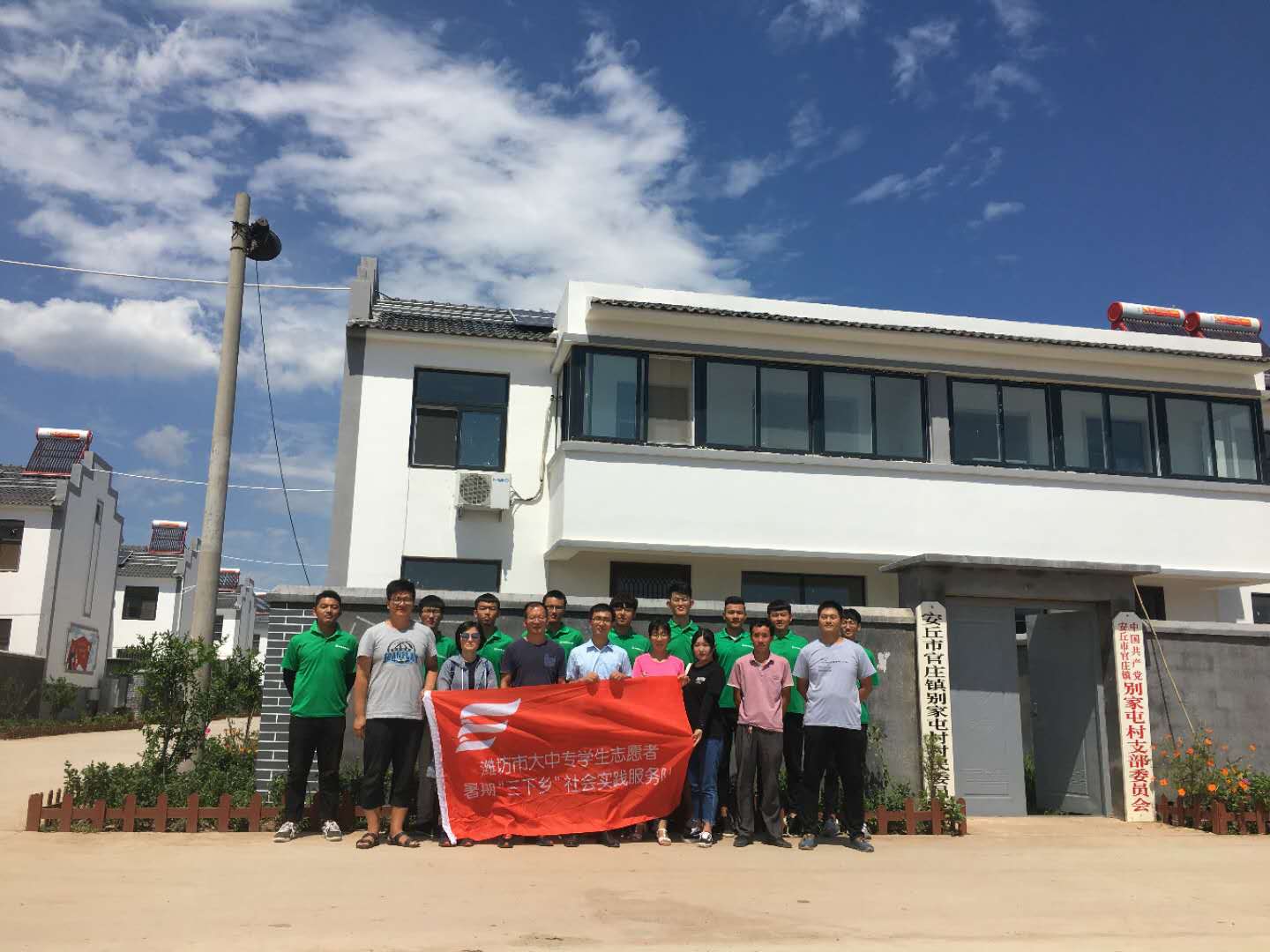 8月23日,农林科技天行体育官方网站“新知青”科技支农帮扶团队师生15人,赴安丘市官庄镇别家屯村进行暑期三下乡社会实践活动。团队成员根据自身专业特长,以实际行动助力精准扶贫,服务乡村振兴战略,期间由专业老师同当地村干部及村民亲切交流,了解别家屯村,当地基本情况,在政府政策、乡村规划、发展方向各个领域深度探讨,因地制宜,提出建议性方案,共谋村落发展。