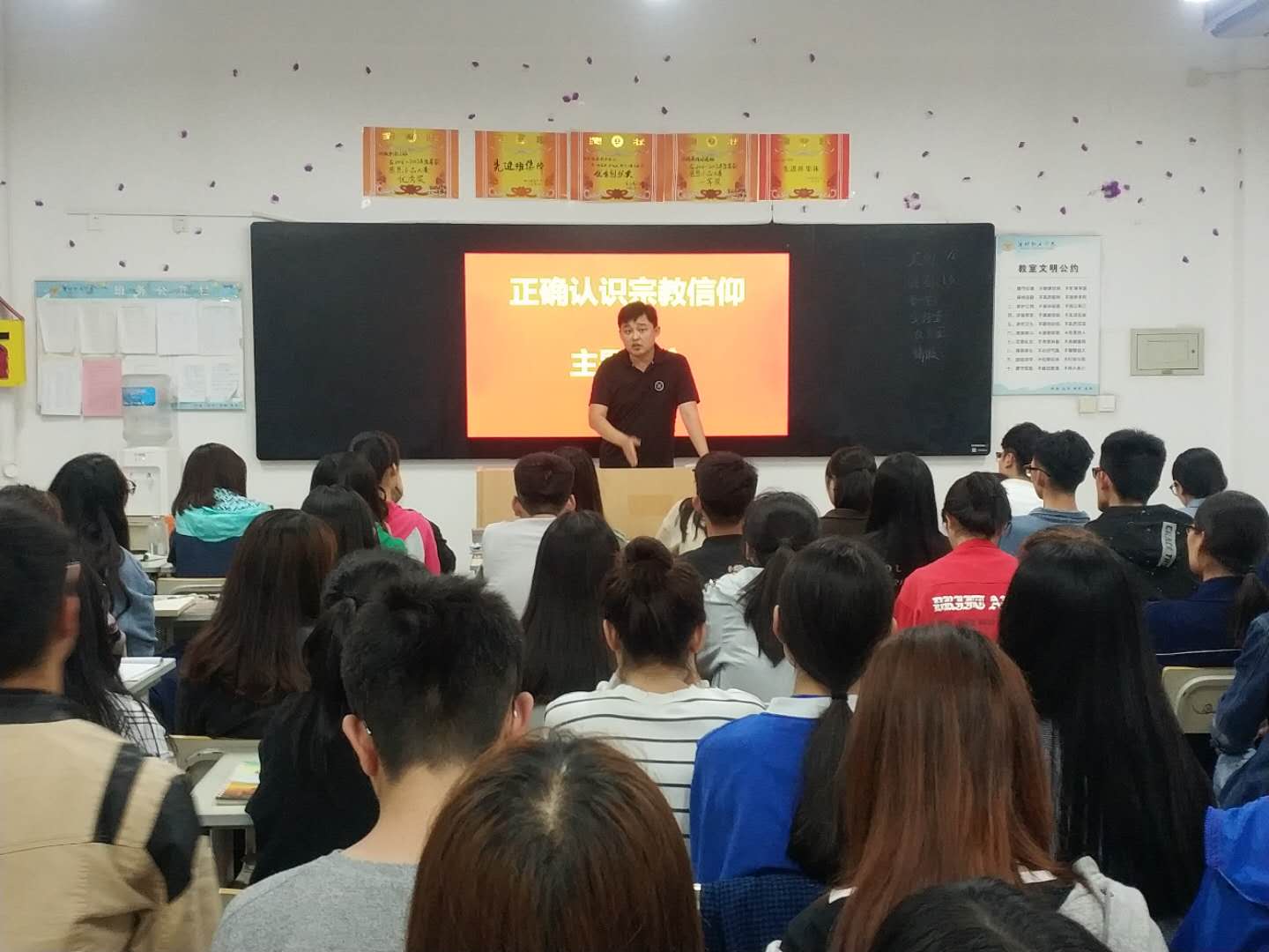 为使广大学生进一步提高识别、抵御和有效防范邪教的能力,培养学生正确的世界观、人生观,食品药品天行体育官方网站于5月21日组织各班级召开了“正确认识宗教信仰”主题班会。