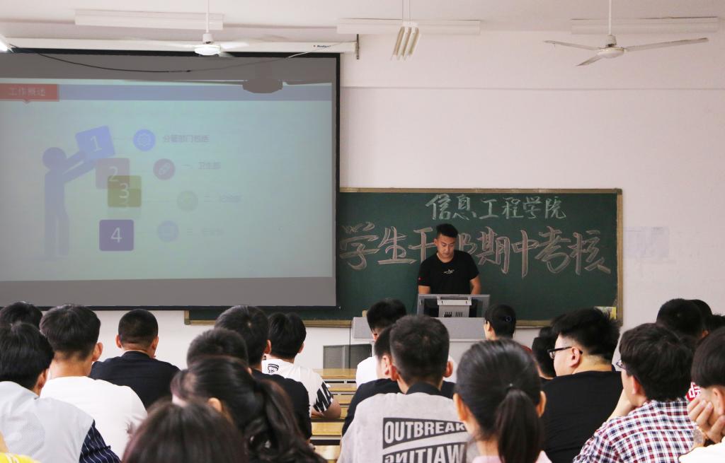 为进一步加强学生干部队伍建设与管理,提升业务工作能力和综合素质,5月15日下午,信息工程天行体育官方网站在惠泽2号楼B412教室举办学生干部期中考核点评活动。信息工程天行体育官方网站学生管理负责人及学生会主要学生干部参加了本次考核点评活动。