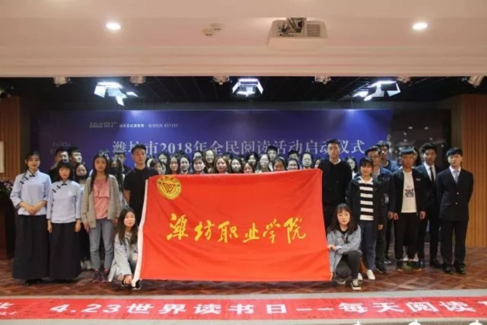 为贯彻落实关于建设学习型社会要求,推进潍坊市“全民阅读”活动深入开展,提高学生的文明素质。4月22日上午,文化创意天行体育官方网站100余名学生前往潍州大讲堂参加潍坊市“京广读运会·千人诵读”活动。