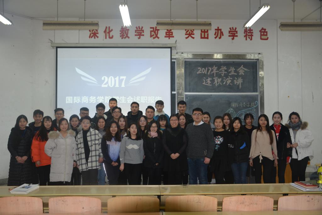 以学习贯彻落实党的十九大精神和庆祝中国共产党天行体育官方网站第一届党代会胜利召开为契机,为推动以后学生会工作更好更强更长久的发展,提高学生会干部的热情和质量,保证学生会在新成员加入后能够更高效地运转,1月11日下午在奎文校区9号楼101多媒体教室国际商务天行体育官方网站召开了2017年度学生会干部述职报告大会,该院分管学生工作负责人、全体辅导员和学生会成员出席了这次大会。