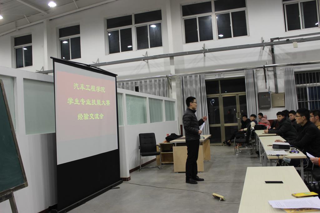 为促进学生养成崇尚技能的行为意识,培育学生工匠精神,推动技能大赛的普惠性,实现汽车类各专业之间的分享、交流。1月7日晚,我院在金泽楼汽车营销实训中心召开了学生技能大赛经验交流会。各专业有意愿提升自身专业技能水平和参加技能大赛的150多名学生和相关专业的技能大赛指导老师参加了交流会。