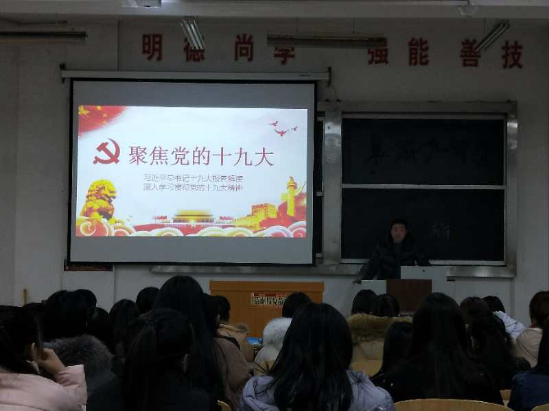 为深入学习贯彻党的十九大报告精神,推动十九大精神进课堂、进教材、进头脑,在全院范围内掀起学习宣传贯彻十九大精神热潮,文化创意天行体育官方网站积极贯彻通知要求,认真落实宣讲十九大精神的活动,努力把十九大报告精神学习领会好、贯彻落实好。