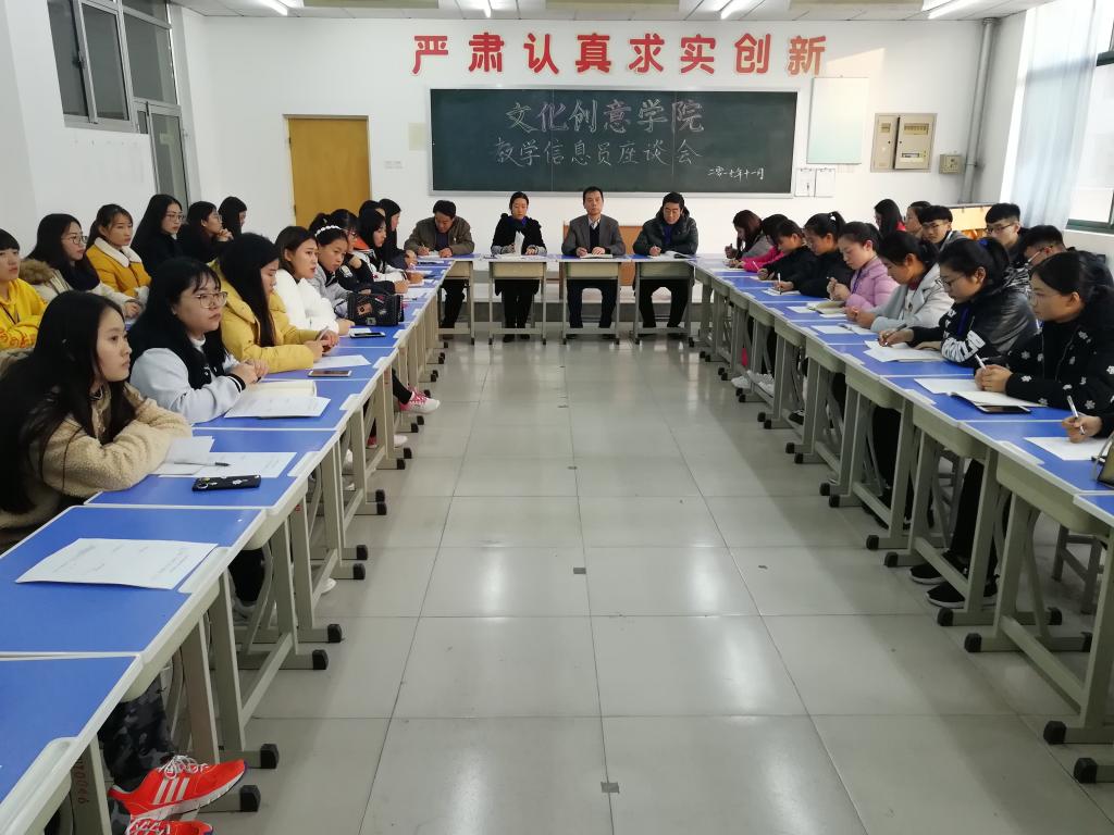 为加强日常教学规范化管理和教学质量监控,及时发现教学中存在的问题,11月28日下午,文化创意天行体育官方网站在16号楼121室召开了教学信息员座谈会。天行体育官方网站主要负责同志出席了座谈会,分管学生负责人及教学有关人员、全院40余名教学信息员参加了座谈会。