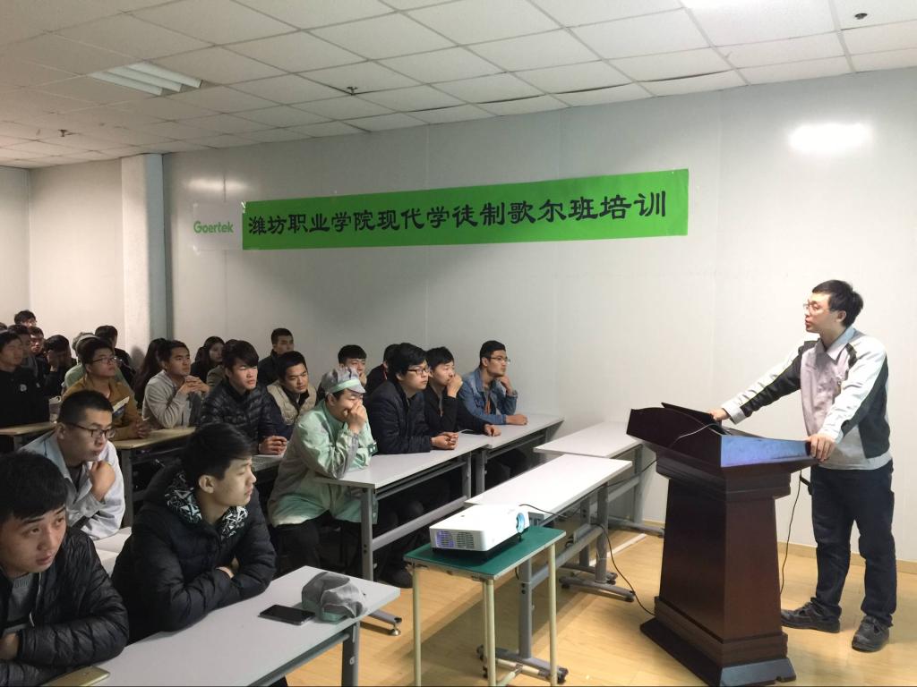 现代学徒制试点项目是我院以省级现代学徒制试点为契机,与歌尔股份有限公司签订的战略性合作项目。今年9月18日,2016级数控技术专业44名学生在歌尔股份有限公司的培训中心举行了隆重的拜师仪式,并被媒体“直播潍坊栏目”全程报道。截止发稿目前,44名学徒均在歌尔PMF-PPM事业部注塑中心重要岗位任职,学习工作情况良好,得到企业领导一致好评。