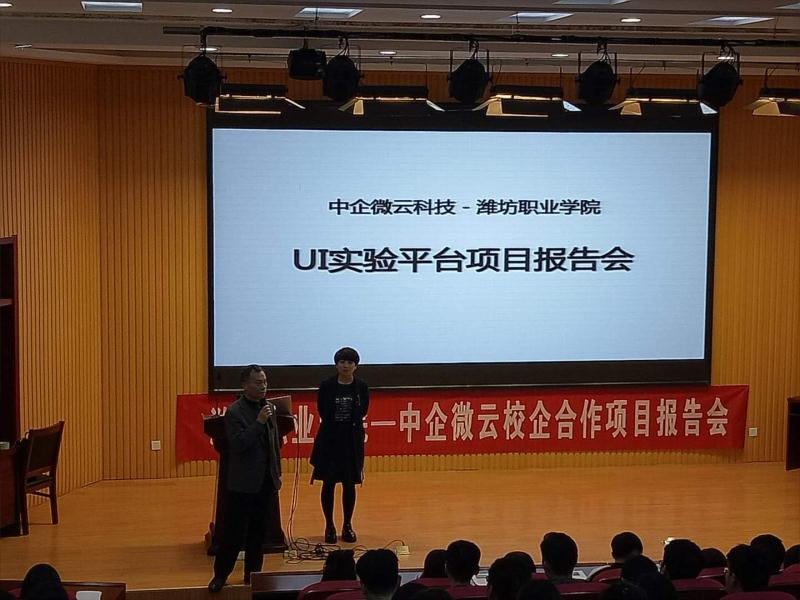 11月2日下午,文化创意天行体育官方网站在奎文校区大学生创业中心一楼路演厅举办了中企微云UI实验平台项目报告会。文化创意天行体育官方网站主要负责同志和中企微云(北京)科技有限公司华北市场总监等参加报告会。文化创意天行体育官方网站2016级文创类专业180多名学生参加。