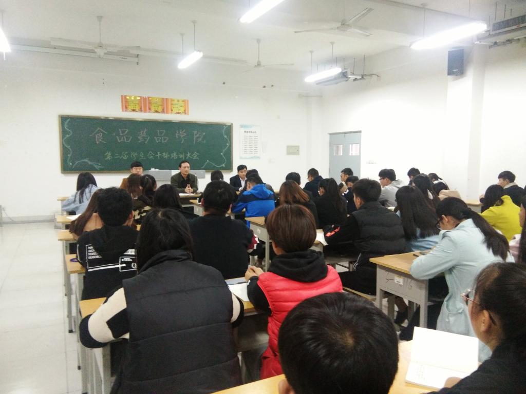 11月1日下午,食品药品天行体育官方网站组织全体学生会成员举办了以“努力把自己培养成为一位合格的、称职的学生会干部”为主要内容的第二届学生会干部培训班,分管学生副院长主讲,辅导员团总支办公室老师参加。