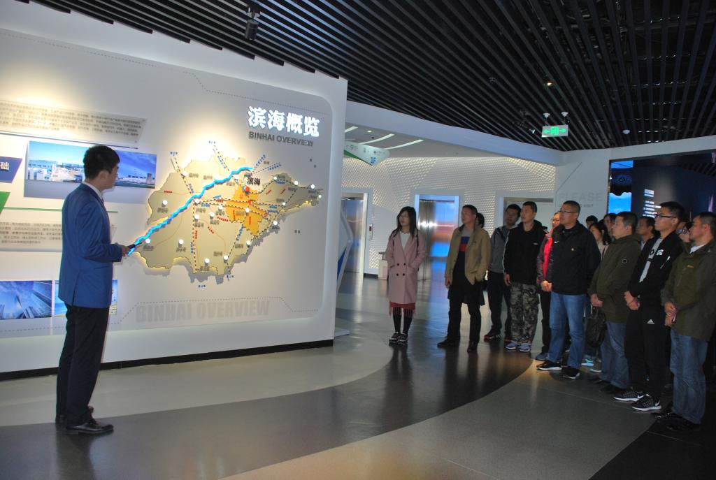 我市自2013年实施突破滨海战略以来,便将滨海作为全市战略布局的重点环节,以此引导和促进全市经济转型升级。我院作为科教园区首批入住的高职院校,抓住这一战略机遇,各项事业得到了长足的发展。潍坊滨海城市艺术中心总建设面积26000平方米,各大展区蕴含不同主题,各具特色。展览区以“启梦、筑梦、完梦”为主线,划分为三大展区,共25个展项,利用艺术表现形式,展现了潍坊滨海盐碱滩变新城的历史足迹。大家行走在如梦似幻的海洋风格通道中,徜徉在浸润着滨海海盐文化特色的展板前,站在巨大的立体电子屏幕中间,别具一格的设计风格、多媒体的精彩展示、互动感强烈的参与感受、反映潍坊滨海建设成就和未来规划的宣传片等等,给大家带来了震撼的“浸入式”体验!宣传片中多次出现的我院建设发展和人才培养展示画面,更令大家欢欣鼓舞!