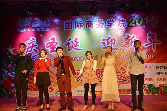 12月24日,圣诞平安夜的夜晚,奎文校区报告厅内充满祥和欢乐的气氛。国际商务天行体育官方网站2015庆圣诞迎新年联欢晚会在这里举行。各职能部门、二级天行体育官方网站负责同志及国际商务天行体育官方网站全体师生观看了晚会。